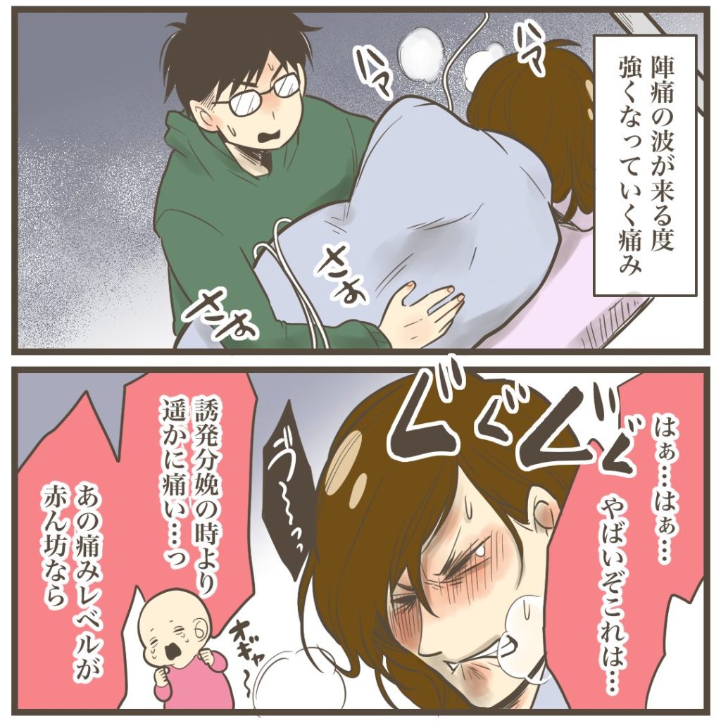 次の陣痛が来るのを構えておかないと痛みでのたうち回ってしまいそうなので、深呼吸が精一杯だったなぁ