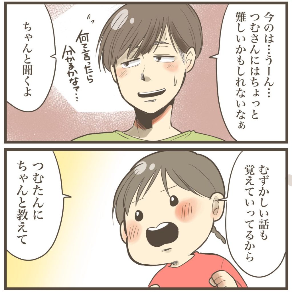 何でも知りたい2022.03.21育児育児漫画 ■インスタへはこちら ※ブログ開始以前の漫画はコチラにあります 本編 あとがき質問の嵐で毎日何度もググってます。 【巨大児と母の6日間】巨大児と母の6日間【1】【2人目出産レポ】2人目は巨大児でした1【現在進行形ダイエットレポ】産後ダイエット無双1 7 同じカテゴリの記事 お腹が痛すぎる 本当にあった恐怖体験…夏 お父さんの宝物 計画通り!!! 継承されるしりとり つむさん一年生になりました! 欲にまみれた水餃子 3歳児の本気のかくれんぼ ポケ●ンってこんな顔だった? 一生オサレできないんじゃ…… アイツ誇らしげに笑ってた 子供の茶碗を陶器にした結果… 天上天下唯我独尊 初めてお手紙をもらったんだけど 2歳児の知能フル回転!! おやすみのちゅう★ プールの顔つけは難しい 推しのためなら… 先生とクローバー 男のプライド(2歳児) 親として堪えるべき試練 4歳で転園した話【後編】 4歳で転園した話(前編) 根に持つ2歳児 雨の日に 歯医者さんでフッ素を塗るぜ! ぱぁん 嵐の夜、それは起こった… ゲーマーの子 わさわさ棒を作れ! 熱せん妄で虫に襲われた話 プレゼント漫画 真夏のホラー スタイ大作戦 1コマ育児詰め合わせ② 悪い人の名前 1コマ育児つめあわせ① 力の差 心が折れた いとくんの保育園での様子 くさい あなたに伝えたい 何でも知りたい 冬場の風呂上がり漏らしがち 育休が終わるので散髪しに行った話 突然の胎内記憶 巨大児いとくんの選び取り いとくん お誕生日おめでとう 怒りのあまり… いつの間にか汚れた大人になっていたのね… 車内でウンチョスがもれた話 キュウリのビール漬け おふくろの味 たまご 一番衝撃的だった寝相 つむさん お誕生日おめでとう 髪を切ったら・・・ 愛しい我が子たちへ捧ぐ 愛しさとせつなさと心強さと 男児の飛尿 いとくんに見える不思議なもの 前の記事 巨大児と母の6日間【3】 2022.03.19次の記事 巨大児と母の母の6日間【4】 2022.03.24アプリなら通知ですぐ読める! NAPBIZブログ